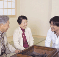 認知症の患者様にとって、日常のおしゃべりや料理、裁縫、園芸など日々の暮らしがリハビリになります。常に人とふれあう場を作ることで、普段の生活をリハビリの場として活用し、患者様に負担の少ない自然な形で治療を行っています。