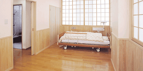 | 当センターでは、患者様にゆったりとした居住スペースをご用意しています。病室を個室と2人部屋に限定することで、患者様のプライバシーを尊重し、ご自宅のような家庭的な雰囲気の中で暮らしていただきます。また、起床や食事、入浴、睡眠といった日常生活の時間配分は、患者様ご自身に決めていただきます。 |